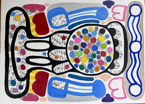 Tinta acrílica, caneta nanquim e caneta posca sobre papel Canson 330 gr